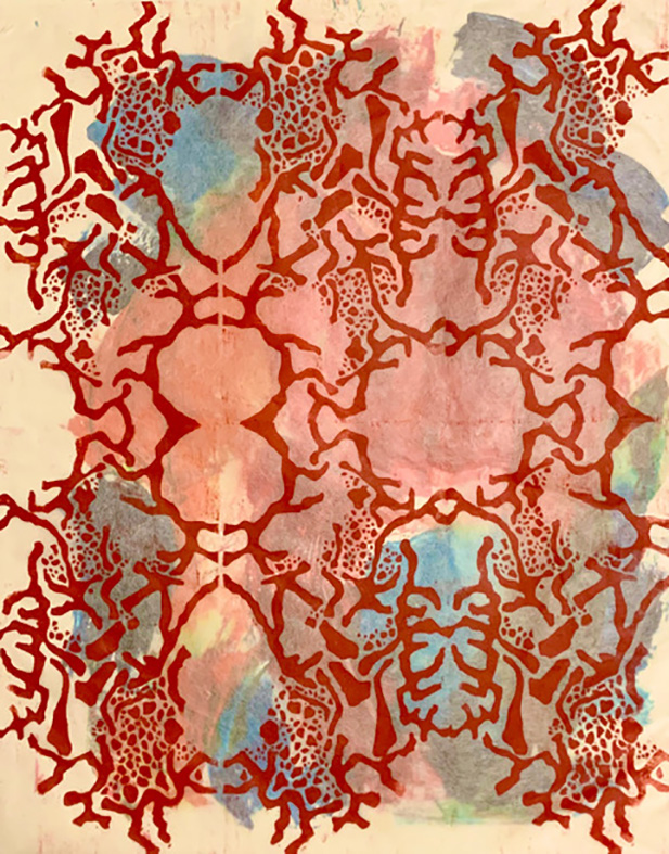 Rakastuin puupiirrostekniikkaan välittömästi opiskellessani Pekka Halosen akatemiassa, josta valmistuin 2023. Ensimmäisen yksityisnäyttelyni pidin 2022. Puupiirroksissani ilmaisen viehtymystäni jatkuviin kuvioihin ja ornamentiikkaan. Hyödynnän teoksissani ohuen japaninpaperin läpinäkyvyyttä. Pidän myös katoavan laatan tekniikasta, joka haastaa aivonystyröitä. Lisäksi yhdistelen puupiirroksia muihin tekniikoihin, kuten monotypiaan.